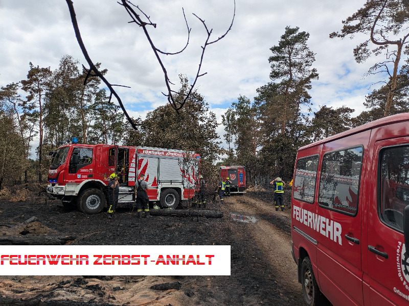 Am Abend konnte das letzte Material aus den betroffenen Brandgebieten zurückgebaut werden, auch die Einsatzleitung am Gerätehaus in Jütrichau wurde aufgelöst. Wieder aufflammende Glutnester in den nächsten Tagen konnten durch die Feuerwehr Jütrichau mit Unterstützung aus Deetz und am Freitag auch von uns gelöscht werden.