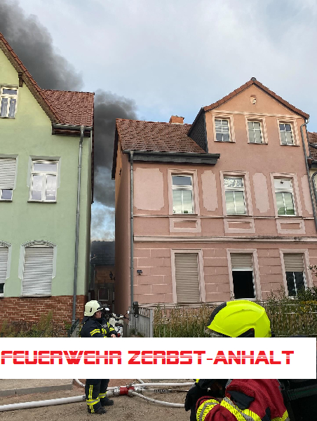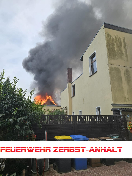 Wir wurden zunächst mit dem Alarmstichwort "starke Rauchentwicklung auf Hinterhof" alarmiert, gleichzeitig wurde auch die Freiwillige Feuerwehr Jütrichau alarmiert.