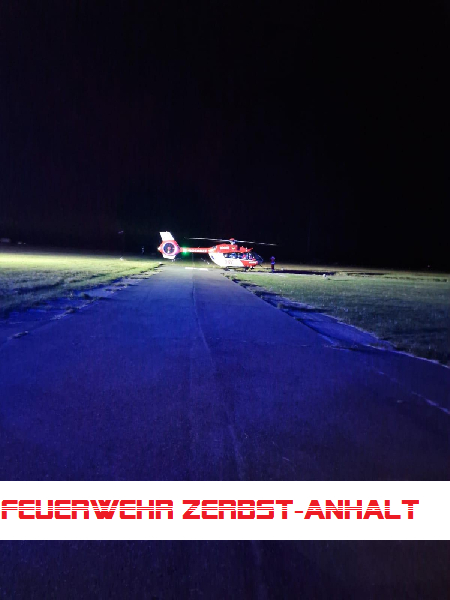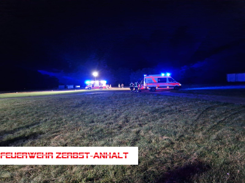 Wir wurden alarmiert, um auf dem Flugplatz die Landestelle für einen Rettungshubschrauber auszuleuchten. Ein Patient musste dringend aus dem Krankenhaus in Zerbst in eine andere Klinik verlegt werden.