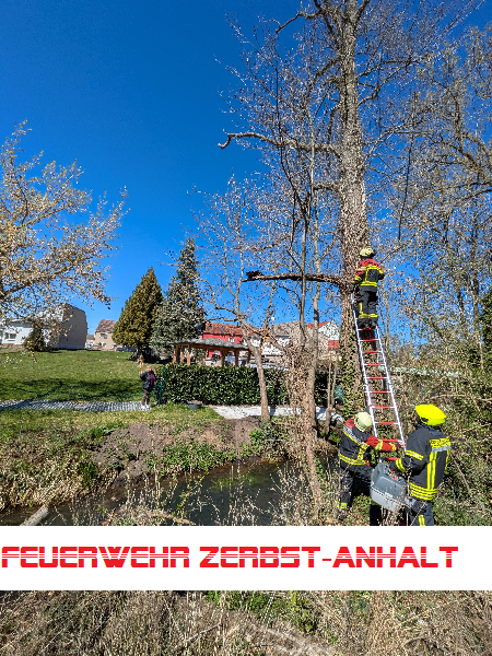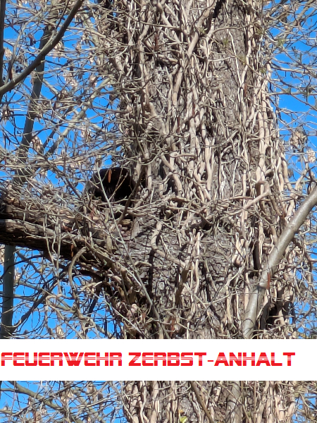 Der Baum befand sich im Außenbereich der Ankuhn'schen Mühle und war mit der Drehleiter nicht erreichbar. Wir haben zunächst störendes Gestrüpp beseitigt. Als wir uns der Katze über ein tragbare Leiter näherten, hat diese - wie es fast immer in solchen Fällen passiert - den Baum selbständig verlassen und die Flucht ergriffen.